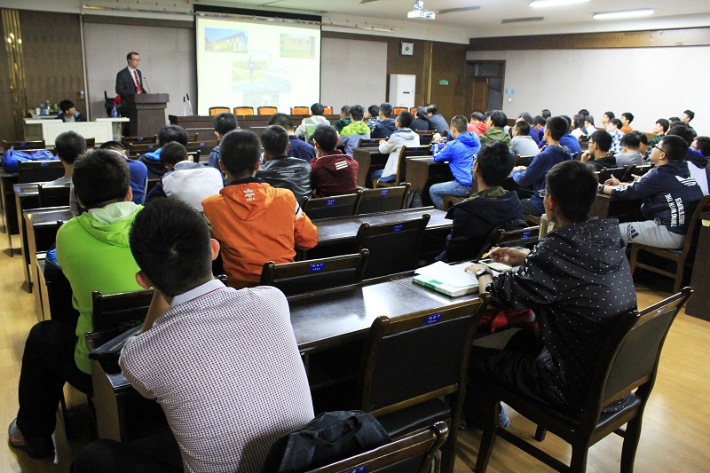 7日晚8:00-9:45,Stephen Giles向来自机电、食品、水建等多个学院的60余名同学介绍了2017年哈伯亚当斯大学暑期访学项目的课程设置、项目规划、工程与食品科研实践等内容,回答了同学们关心的话题。