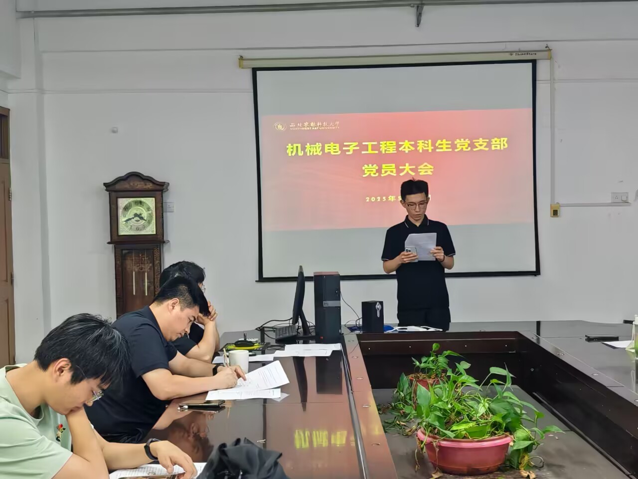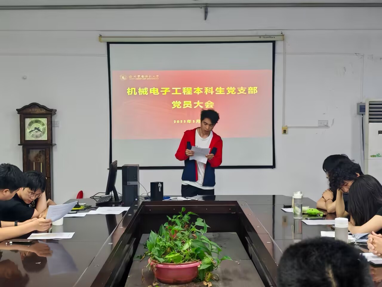 本次会议由党支部书记常星海同志主持,机械电子工程本科生支部全体党员出席本次会议。支部大会应到正式党员14名,实到14名,符合党章规定,表决决议有效。