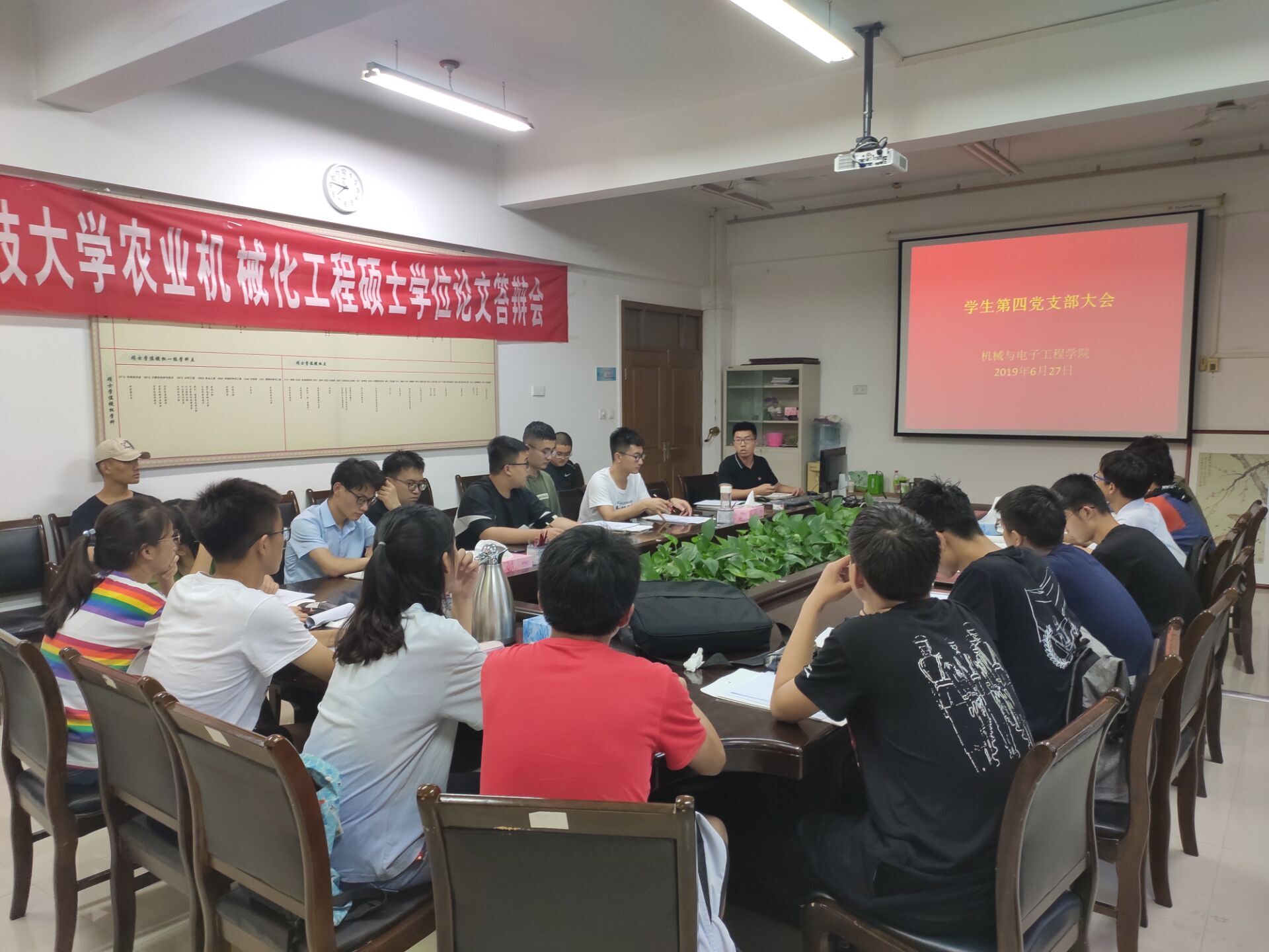 深入学习贯彻习近平新时代中国特色社会主义思想和党的十九大精神,扎实推进“两学一做”学习教育常态化、制度化,6月27日晚,第一版主 学生第四党支部组织全体党员在学院二楼会议室召开党员大会。会议由支部书记罗顺意主持。