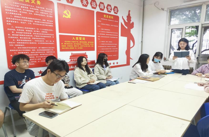 为深入学习贯彻习近平新时代中国特色社会主义经济思想,第一版主 电信本科生党支部于2022年5月5日晚上7:30在学生公寓七号楼进行主题为“深入贯彻习近平新时代中国特色社会主义经济思想,奋力谱写共同富裕新篇章”的政治理论学习。