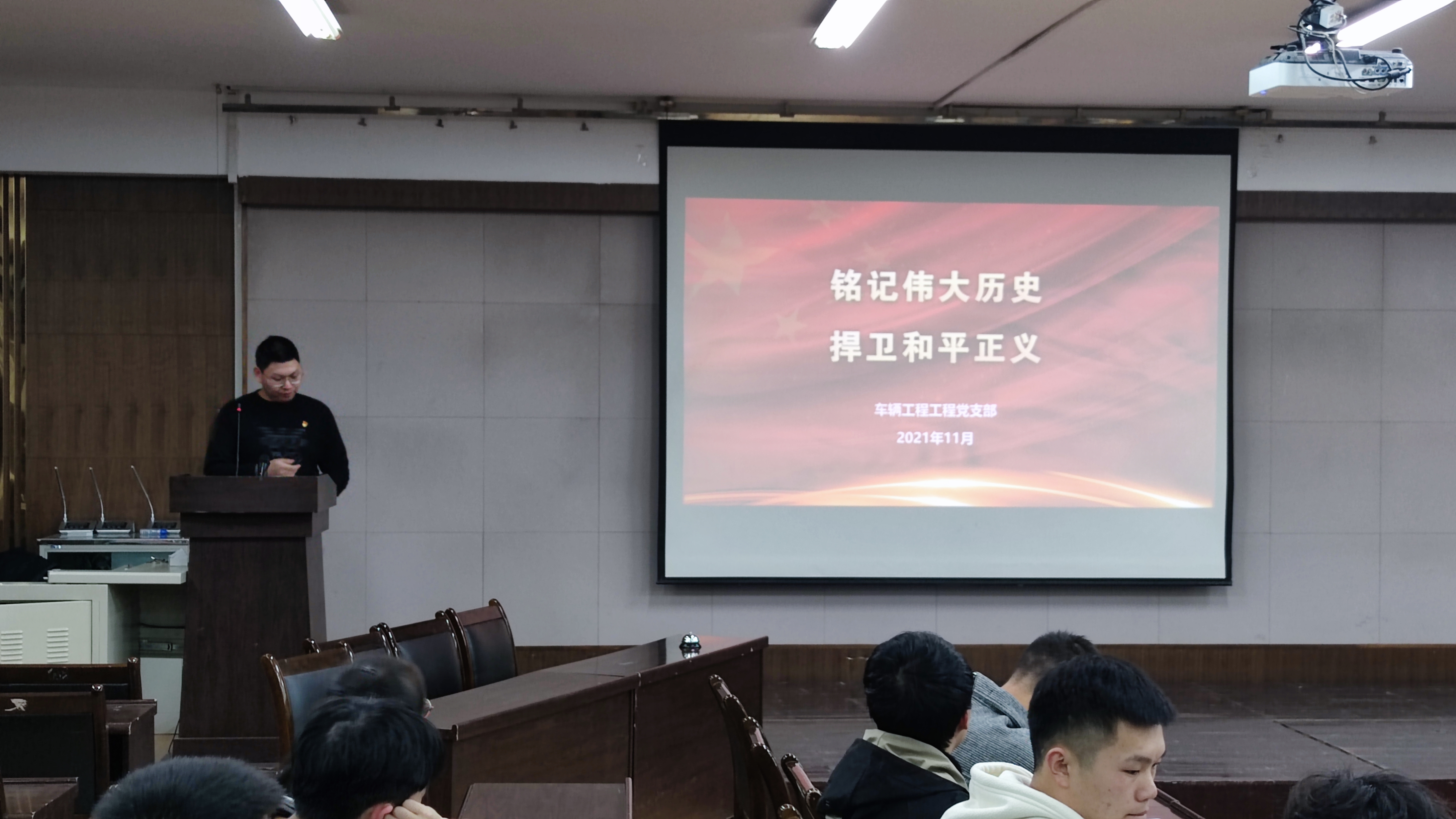 为持续深入党史学习教育,传承伟大抗美援朝精神。11月25日晚,车辆工程本科生党支部和机械设计及其自动化本科生第二党支部在9326共同开展铭记伟大历史,捍卫和平正义主题党课活动。本次党课由车辆工程本科生党支部宣传委员戴佳燚同志主讲。
