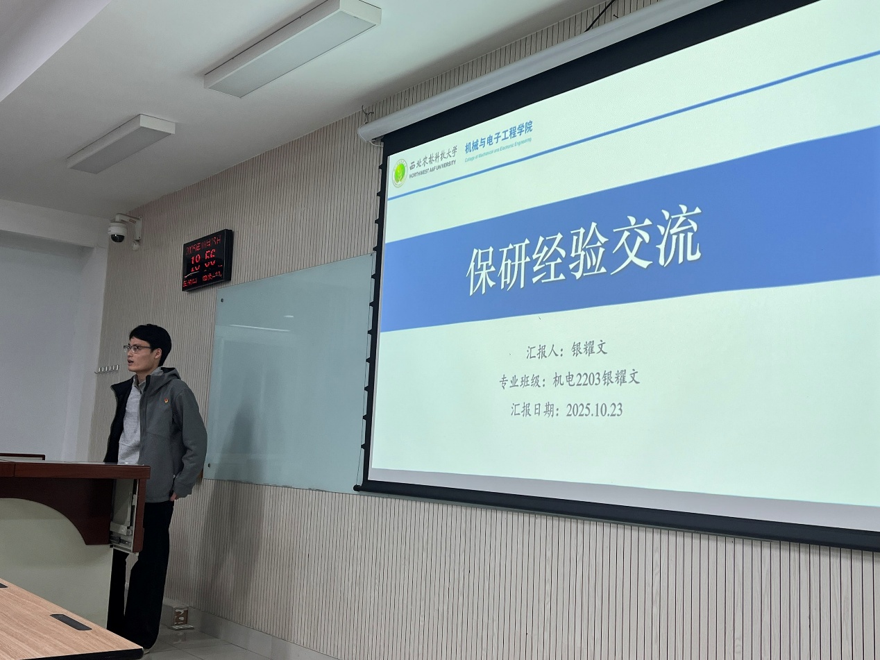 机电和智能装备工程本科生党支部开展“保研经验交流分享会”专题政治理论学习2025 年 10 月 23 日晚 18 时,机电和智能装备工程本科生党支部“保研经验交流分享会” 在八教 8217 教室如期举行。本次分享会邀请多位成功保研的学长学姐,围绕保研政策解读、个人经验分享、备考技巧传授等核心内容展开,为在场同学搭建了获取保研干货、明确升学方向的优质平台。