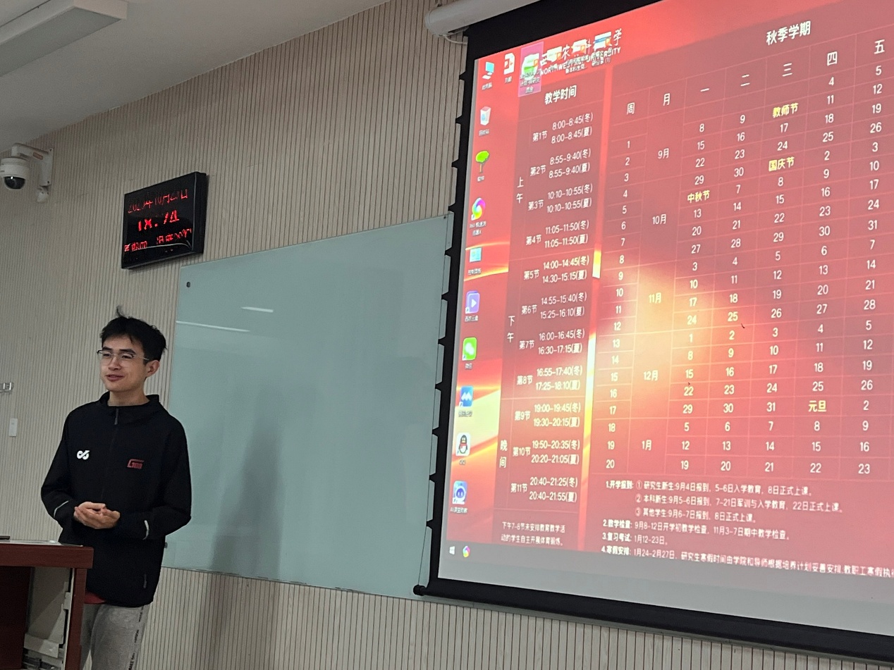 分享会最后,张楠同学对本次活动进行总结。他鼓励同学们在扎实做好学业的基础上,积极参与志愿服务,主动向党组织靠拢,在提升个人能力的同时,践行责任担当,为集体与社会贡献力量。