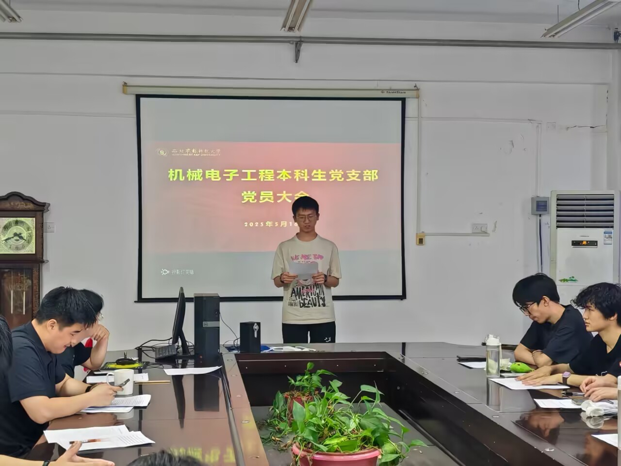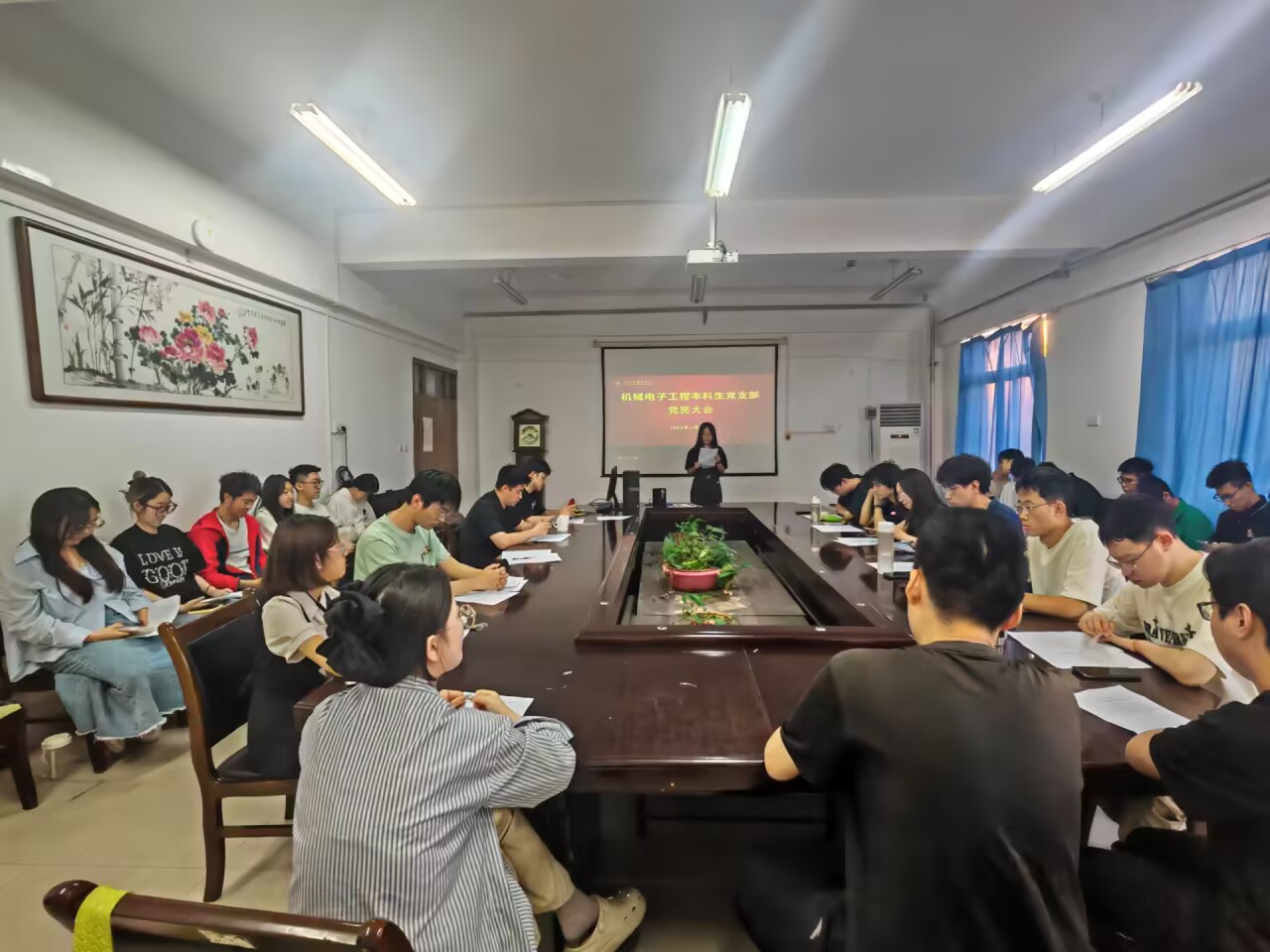 5月16日,机械电子工程本科生党支部在第一版主 9402召开接收预备党员大会,会议严格按照发展党员工作细则,规范有序进行,机械电子工程本科生党支部全体成员出席此次会议。