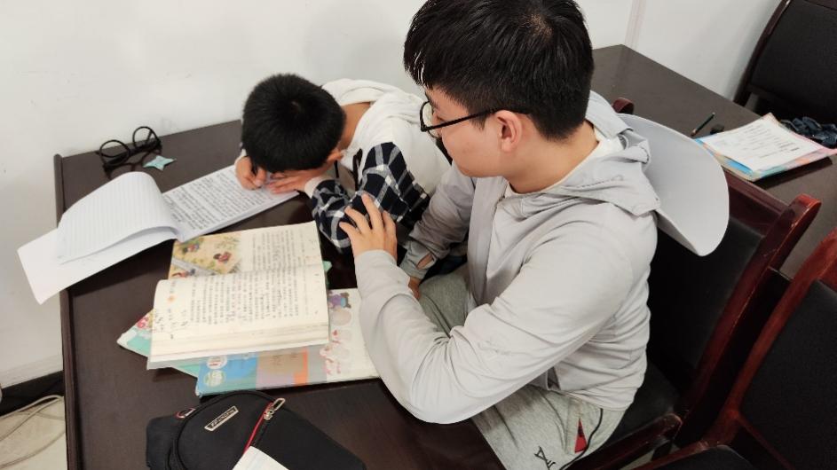 在与社区主任提前沟通之后,支部同志们早早来到董家庄村村委会,并提前布置好书桌椅子,为支教活动的开展做准备。小朋友们陆续到来之后,根据实际情况,采用一对一的模式开展学业帮扶,更有效的帮助小朋友解决难题,同时针对小朋友的弱势科目及时给予帮助。