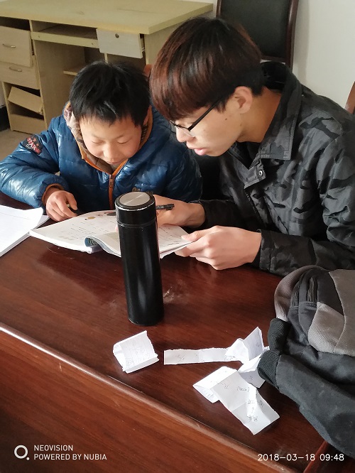 按照上周对孩子们的了解,这次的支教活动进行的更为顺利。分配好人员,每个人带领一个孩子,检查他们的课后作业,补充训练了一些技巧性的知识。孩子总是有爱玩的天性,每个孩子也有不同的性格,有的需要鼓励,而有的则需要给他一些压力。只要耐心、细心地对待他们,总能找到让他们坐下来的办法,总会教给他们所需要的知识。无论语文,数学,英语还是画画,当他们看到自己又在某处有了成就,他们会很开心,这使孩子们的学习积极性有所提高。除了学习,拓展课外的知识,提及机器人,智能化引起他们的乐趣,对于这些很神奇的事物,孩子们还是相当好奇的。