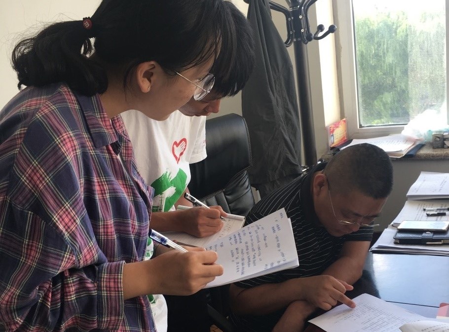 在扶贫办办公期间,撖松杨、郝宇君、姚鹏远三名调研队员前往扶贫办主任办公室进行调研走访,调研期间,队员们与张主任亲切、深刻地交谈,听取张主任对乌达区近期的扶贫工作的方案实施情况和扶贫工作进行程度的阐述,队员们在交谈过程中认真记录相关脱贫攻坚工作工作方案实施要点,并在得到允许的情况下对乌达区政府的扶贫工作的落地方案进行查看和调研。方案中明确指出乌海市乌达区实行“六个精准”战略,即 扶贫对象精准、措施到户要精准、项目安排精准、资金使用精准、因村派人(第一书记)精准、脱贫成效精准。据了解,乌海市乌达区精准扶贫特色工作为通过精准识别、精准帮扶的工作方式促使扶贫工作精准到人,精确至贫困户家庭的每一位成员的教育、健康、医疗、住房问题,与此同时,提高国家下发的扶贫资金的使用效益,达到“两不愁,三保障”的工作成效,其中“两不愁”即不愁吃、不愁穿;“三保障”保障其义务教育、基本医疗和住房。