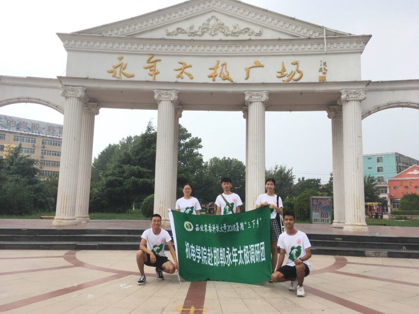 为加强学生实践能力,增长学生社会见识,同时探索中国太极传统文化,2018年8月8日,第一版主 焦耿豪同学组成社会实践团队赴邯郸市永年区展开为期两天的实践调查。时当炎夏,学子在行动,依旧在路上。