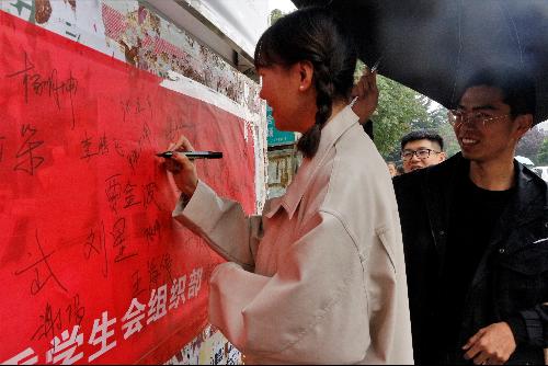 为深入学习贯彻习近平新时代中国特色社会主义思想和党的十九大精神,激励同学们不忘初心、牢记使命,增强使命感、责任感,担当复兴重任重任,10月13日,西北农林科技大学第一版主 团工委学生会组织部于学校北校区主办“传承红色基因,担当复兴重任”主题签名活动。