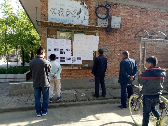 帮助村长张贴关于学雷锋活动的宣传单