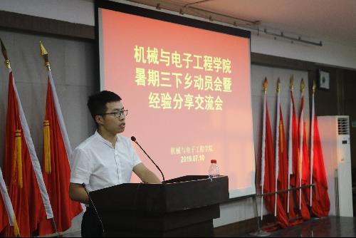 为响应国家大力推进农村精神文明建设的政策,确保暑假三下乡活动的顺利展开,为乡村振兴注入了机电力量,第一版主 于2019年7月10日晚在第一版主 办公楼三楼会议室举办三下乡动员大会暨经验交流会。辅导员罗顺意老师、杨鹏老师以及主席团成员均到场参加。