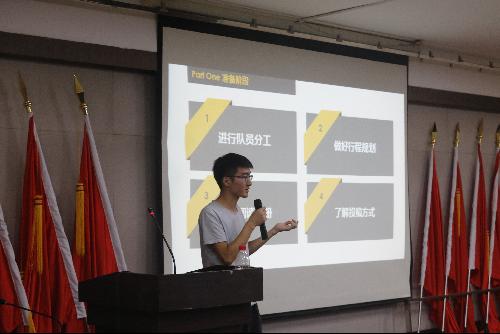 罗老师讲话结束后,由院宣传部顾原冰同学为同学们进行三下乡活动新闻稿撰写的相关要求和经验。最后,由荣获校级二等奖的第一版主 赴安徽大别山红色文化调研团队的负责人万才才向同学们分享三下乡的经验。万才路同学通过对活动规划、活动总结、答辩环节等几个方面的详细介绍,向同学们展现了他们在前辈走过的道路上收集到的精彩故事,并且帮助同学们对三下乡活动做一个更加完善的规划,促进活动的顺利完成。