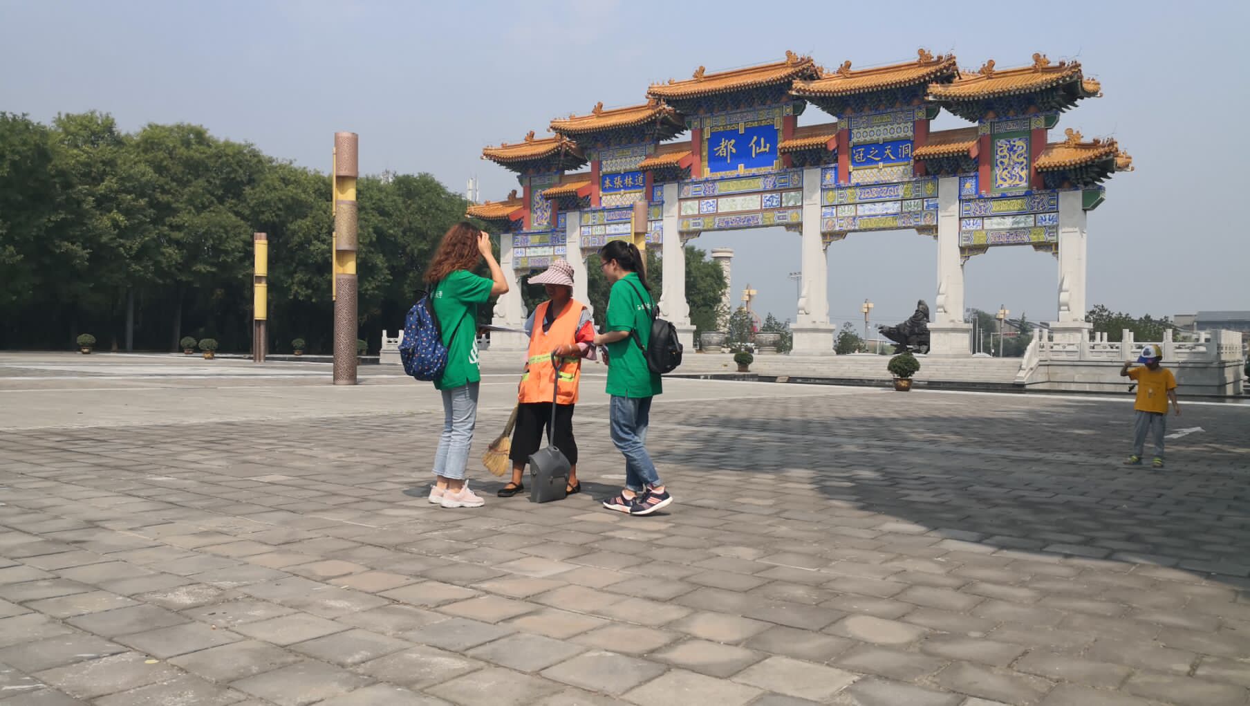 实践调查队成员正在向楼观台工作人员询问当地环境情况及环境保护举措