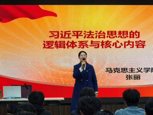 开班仪式结束后,本次团分校的“第一课”随即开始——学院特邀马克思主义学院副教授张丽带来“习近平法治思想的逻辑体系和核心内容”主题团课,为在场青年学子带来一场深刻的思想盛宴。