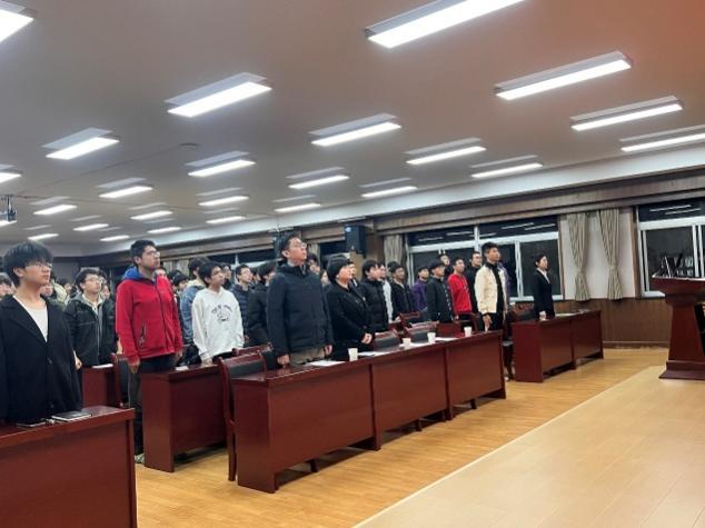 仪式在庄严嘹亮的团歌声中拉开帷幕,全体参会人员肃立齐唱,青春的旋律里满是青年学子的蓬勃朝气。