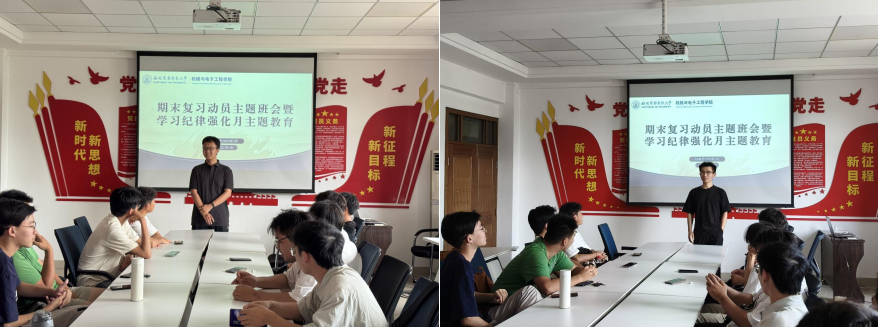 6月8日下午四点半,在第一版主 学生会纪检生活部的组织下,机械2407班在第一版主 9331会议室举办了期末复习动员主题班会暨学习纪律强化月主题教育。本次会议旨在传承学习经验,强调考风考纪,提醒同学们专业分流、工训注意事项,全班同学全员全程参与。