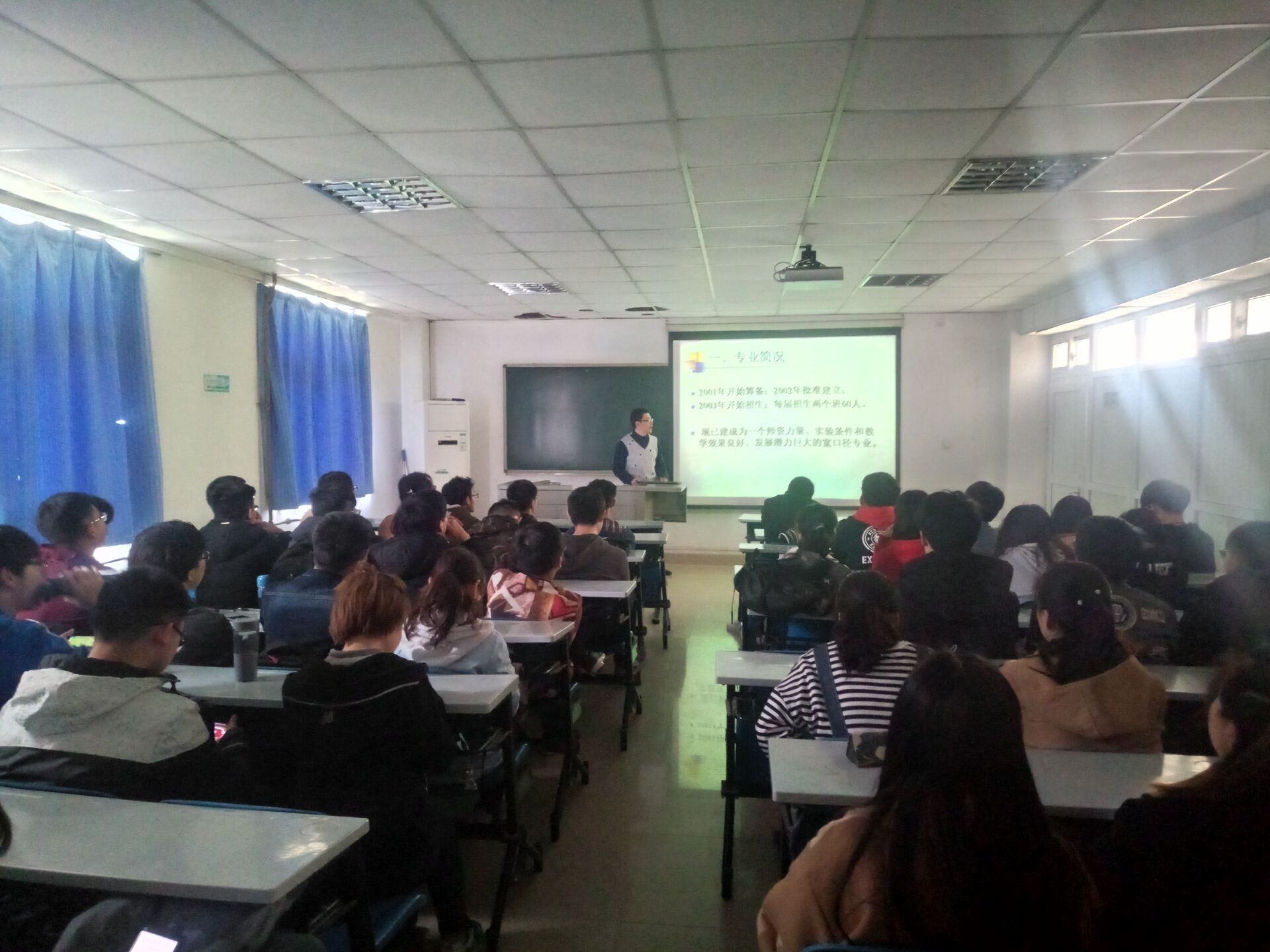 大二阶段,很多学生遇到了自己大学专业迷茫期,为了进一步加深学生们对本专业课程的认识,促进学生专业技能的发展,3月20日,第一版主 电信工程系主任宋怀波老师于院办二楼会议室对2016级电信本科生进行专业再教育讲座,认真地为学生们分析课程内容,就业方向,就业形势,考研保研等方面很多学生关注的信息。