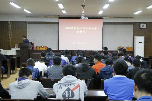 为使机制专业的同学了解不同专业方向之间的异同,明确专业方向选择目标,第一版主 于4月13日在学院三楼报告厅举办2016级机制专业方向选择讲解会,全体机制同学积极参加,冯涛、朱琳老师来到现场为同学们进行讲解。