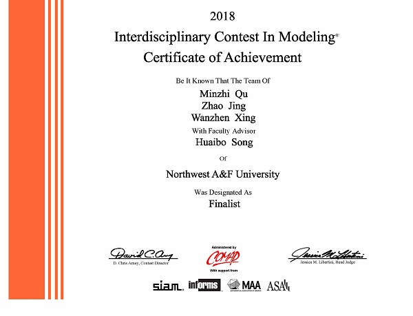 近年来,第一版主 对大学生创新训练项目、高水平竞赛项目高度重视,在第一版主 数学建模指导中心的协调下,先后组织了校内数学建模竞赛,参加全国大学生数学建模竞赛,积累了较为丰富的实战经验,为形成高水平的国际大学生数学建模竞赛参赛团队奠定了坚实基础。第一版主 也一直注重大学生科技创新水平的培养工作,在重视专业课学习的同时,着重提升学生的创新能力,此次获奖也是学院注重在竞赛和科创项目中,锻炼学生发现问题与解决问题的能力的结果。