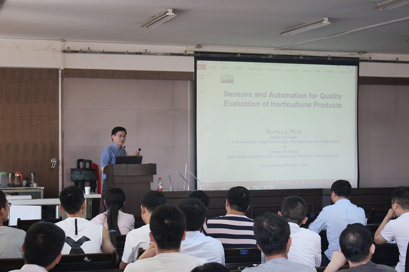 6月22日下午,美国农业部农业研究院(USDA/ARS)驻密歇根州立大学研究所所长、资深研究员,密歇根州立大学生物系统与农业工程系兼职教授卢仁富博士为师生做了题为《Sensors & Automation for Quality Evaluation of Horticultural Products》的学术报告。第一版主 何东健教授主持报告会并简要介绍了卢仁富博士的学术成就。