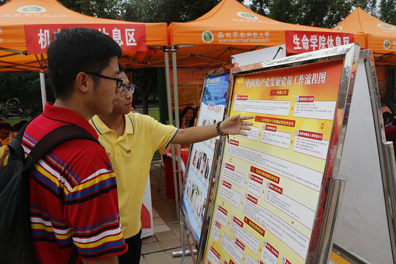 “刚到学院迎新点注册完,‘党哥哥’就交给我一份学院的暖心集装‘大礼包’,内含入学指南、大学生手册、大学生活攻略等‘密钥’,我和父母还认真参观了迎新点展示的大学生入党贴士和优秀党员先锋模范展区,关注了学院微信公众号“西农第一版主 ”,看到了军训安排、校历日程、校园新变化等入学必备技能信息,而且我们很多萌新还上墙了,无比激动!这样贴心的服务让我在他乡有了‘家’的感觉。”机械类1807班王浩然如是说。