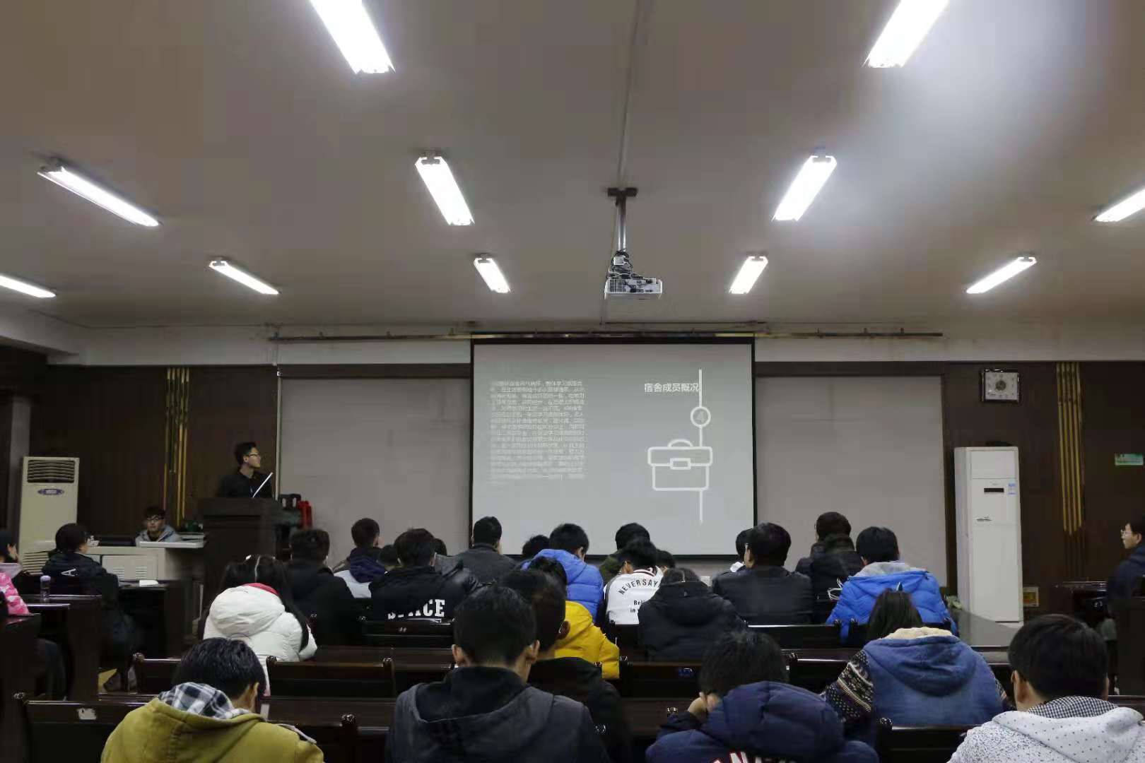 本届“优秀宿舍长大赛”共有48个宿舍报名参赛,第一阶段结合申报材料、经过检查宿舍卫生、常规寝室例检及早起晚归的得分等评比指标评出22个宿舍进入决赛,决赛经过演示文稿答辩展示、评委评分等环节综合考评最终评选出12名优秀宿舍长。