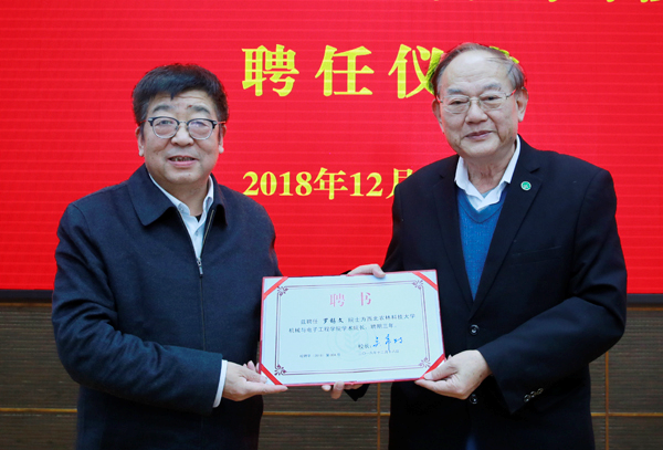 12月18日下午,中国工程院院士、罗锡文教授受聘第一版主 “学术院长”,校长吴普特为罗锡文院士颁发聘书。