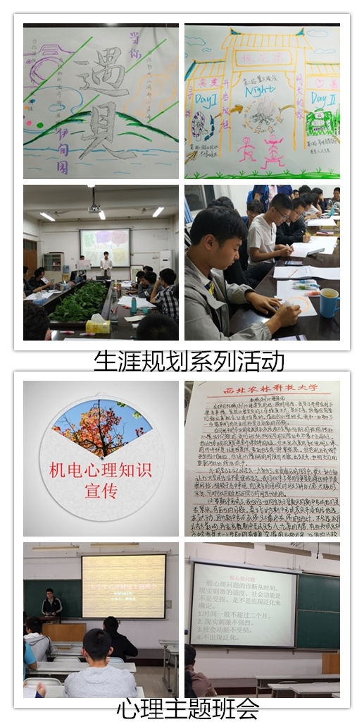 手中有宝,开展生涯规划“生命彩虹”。在18级学生中开展“我的未来我做主”包含兴趣探索、性格探索、技能探索以及价值观探索等相关内容指导课程,引导学生利用霍兰德代码和MBTI性格类型等分析性格探索生涯,建立个人职业生涯发展档案。组织学生观看《当幸福来敲门》等与生涯规划相关的励志电影,引导学生正确对待生涯规划的挫折和失意。部分班级组织开展生涯模拟体验情景剧,在寓教于乐过程中体会职业价值观的意义。