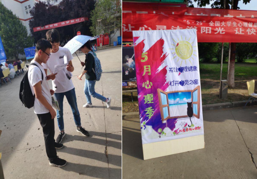 本次活动在12号晚上篮球场提前张贴了海报和横幅,用这种方式对心理知识进行宣传,横幅上充满正能量的文字对同学们形成了积极的心理暗示。在13号上午,部委们对过往的同学进行了一些心理知识及心理健康重要性的介绍;使同学们了解到心理问题不仅仅存在于那些心理疾病当中,更在于生活的细节当中,加深了同学们对心理健康的重视程度。