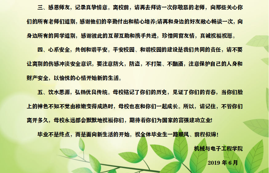 » 2019届毕业生文明离校倡议书