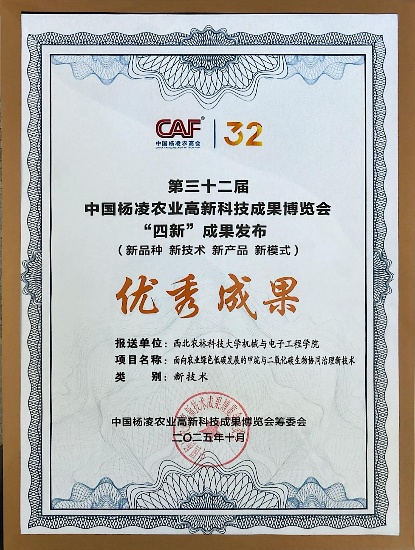 10月26日,在第32届中国杨凌农业高新科技成果博览会“四新”成果集中发布会上,西北农林科技大学第一版主 姚义清教授团队研发的“面向农业绿色低碳发展的甲烷与二氧化碳生物协同治理新技术”入选。