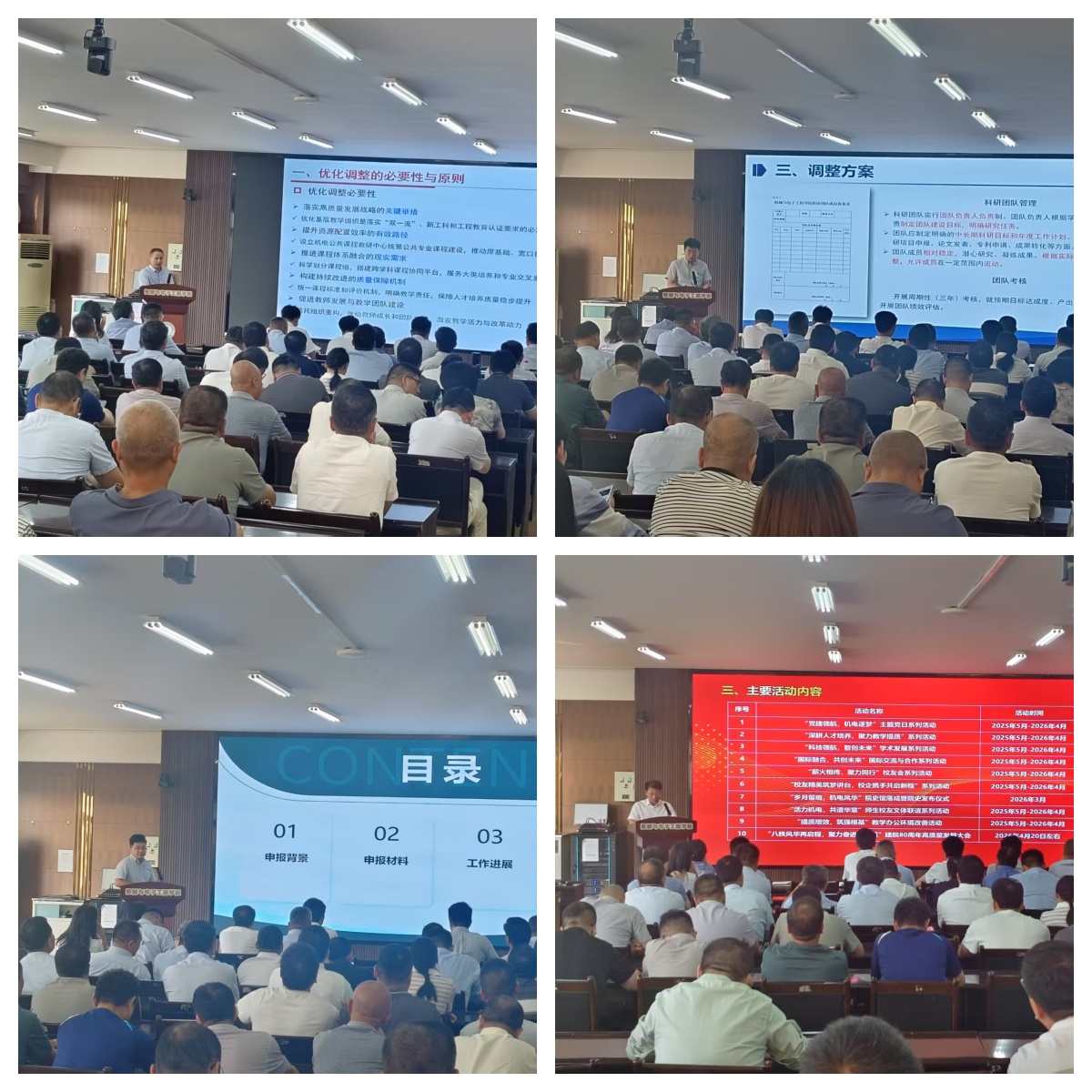 副院长张卫国就学院基层教学组织调整方案作了详细汇报。他指出,面对新工科建设与人工智能深度融合的教育变革,本次优化调整以“专业建设导向、课程体系优化”为原则,构建了“系(机电公共课程教研中心)-课程组”两级管理架构,旨在提升资源配置效率,推动课程间的协同与交叉融合,强化专业内涵建设,进一步打通人才培养“神经末梢”,激发基层教学活力,为实现“厚基础、宽口径、强能力”的高素质人才培养目标提供坚实制度保障。