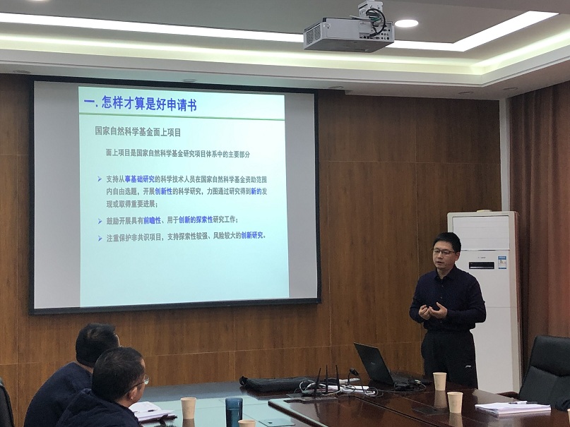 张海辉教授作了“国家自然科学基金撰写体会分享”的报告。从“2019年青年项目评议要点,基金评审看什么,基金成功要素,获批基金实例分析”等方面,详细地从选题、摘要、立项依据、研究目标、研究内容、研究方案及可行性分析、项目的特色及创新之处、年度研究计划及预算等基金申报书内容的撰写注意事项、个人心得体会等方面做了阐述。同时结合自己获批基金申报书详细讲述了每部分撰写应该注意的问题。