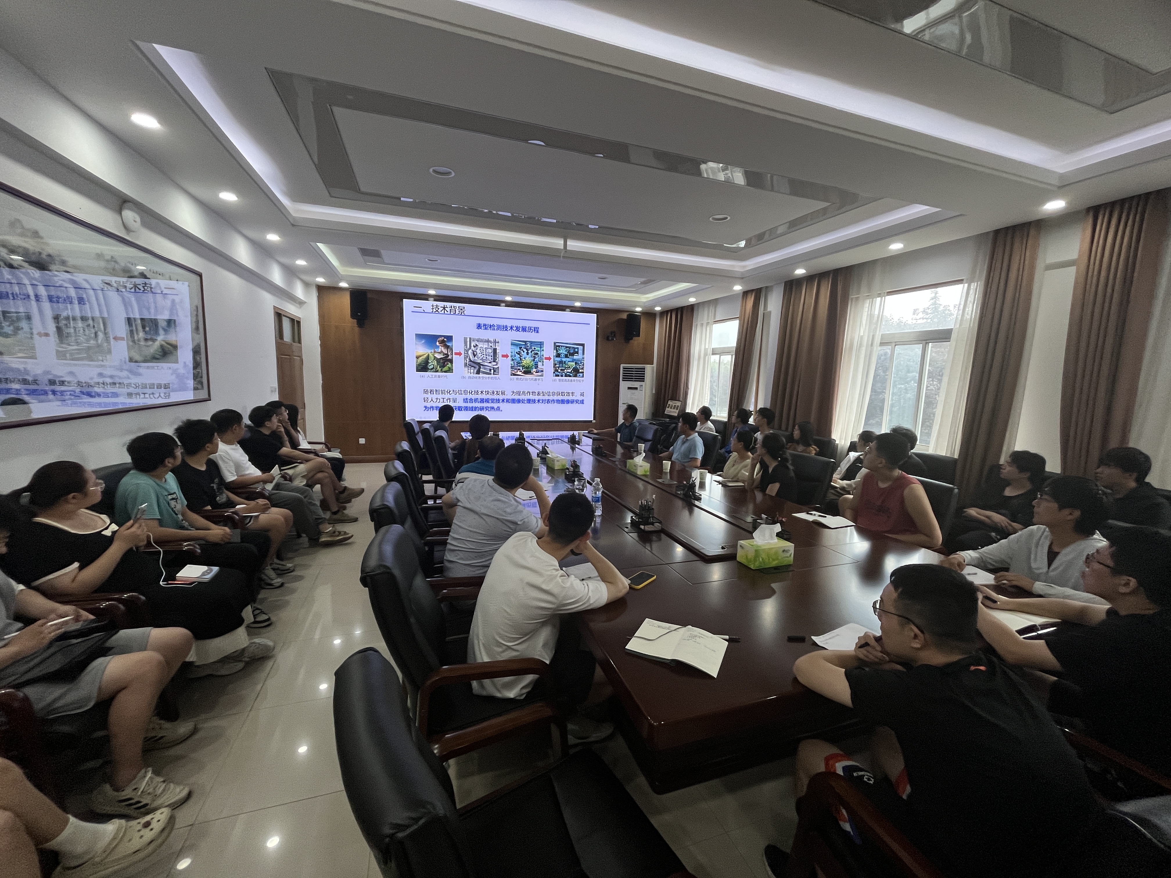 饶元副院长主要围绕作物表型解析展开讨论,内容涉及多模态图像监测、整株豆荚监测识别模型构建与训练方法,日光诱导叶绿素荧光SIF遥感监测等。会后在场师生结合自身研究方向和感兴趣内容展开了深入的交流和讨论。宋怀波副院长在总结中指出,学院高度重视研究生的夏季学期工作,如何利用好夏季学期进行充电,保持对学术前沿的持续关注是研究生应该掌握的基本技能,饶院长的报告内容丰富、层次分明,不仅开阔了师生的视野,对于帮助大家进一步了解植物表型解析技术的前沿进展具有重要作用,学院将继续邀请相关领域专家,开展常态化高水平学术交流与互动,进一步提升研究生的学术视野与创新能力。