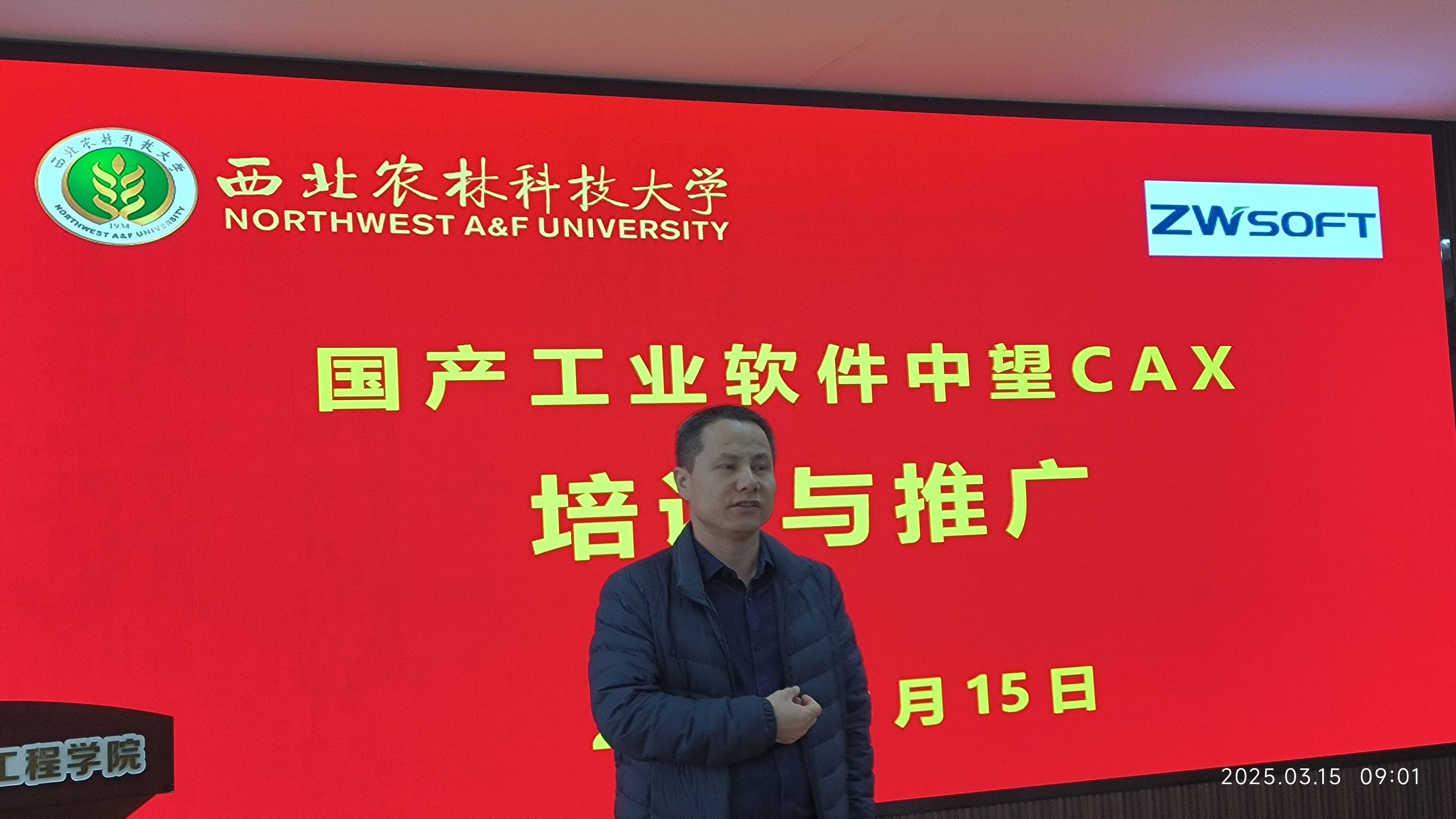 2025年3月15日上午由第一版主 、水建学院联合广州中望龙腾软件股份有限公司举办的国产工业设计软件(中望CAX)应用培训与推广活动在第一版主 326报告厅举行。广州中望龙腾软件公司教育事业部区域经理马超先生、第一版主 副院长张卫国、机械工程系李群卓、董金城、水建学院吴明玉等老师出席了活动。此次活动旨在推动国产工业软件的应用与普及,提升学生专业技能水平,增强就业竞争力,吸引了众多学生参与。