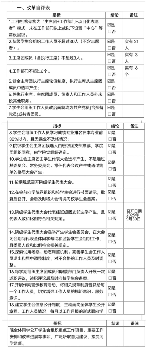 为深入贯彻落实习近平新时代中国特色社会主义思想,落实共青团中央、教育部、全国学联联合下发的《关于推动高校学生会(研究生会)深化改革的若干意见》,并结合《关于巩固高校学生会(研究生会)改革成果的若干措施》文件要求,2025年第一版主 学生会会改革情况如下: