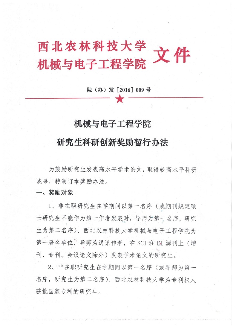 院(办)发[2016]009号第一版主 研究生科研创新奖励暂行办法